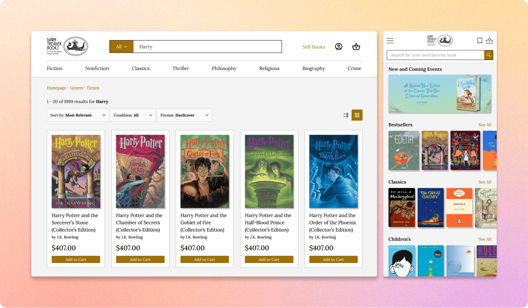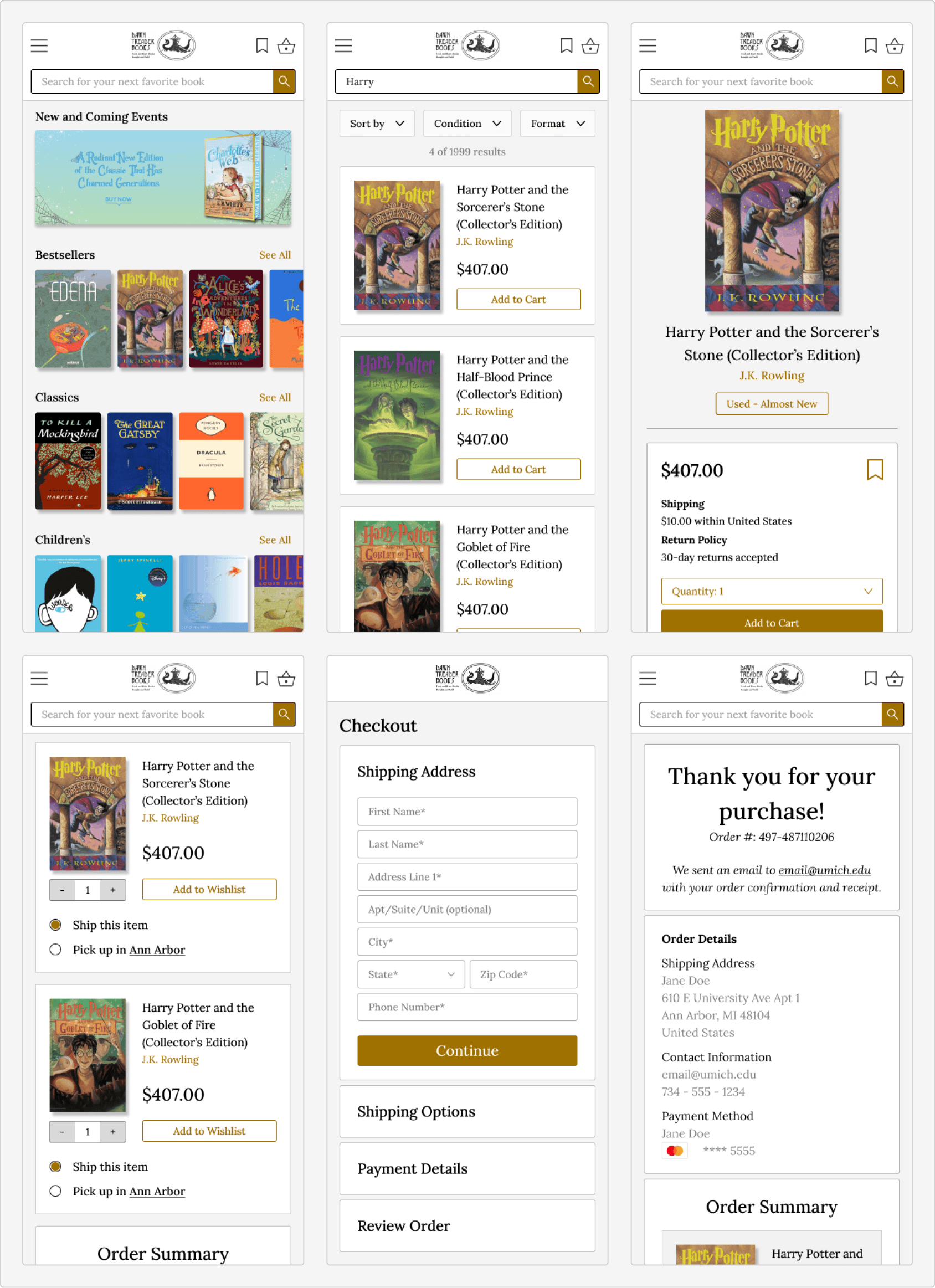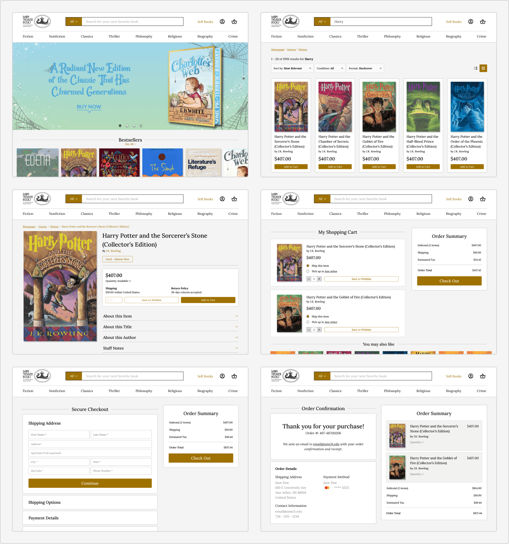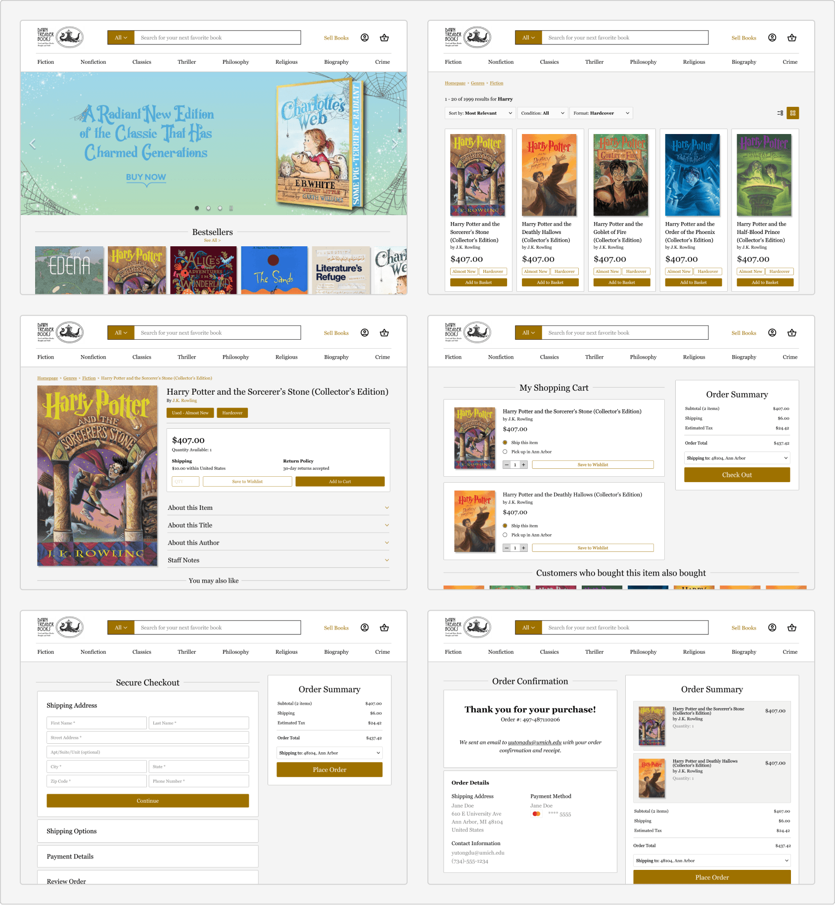 Main Task: Purchase a copy of “Harry Potter and the Sorcerer’s Stone” on both the Dawn Treader website and prototype.