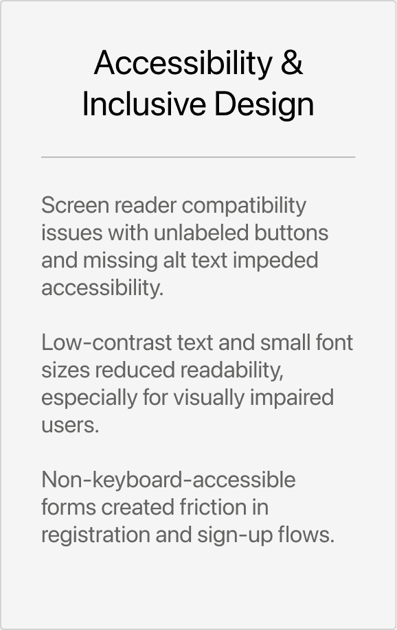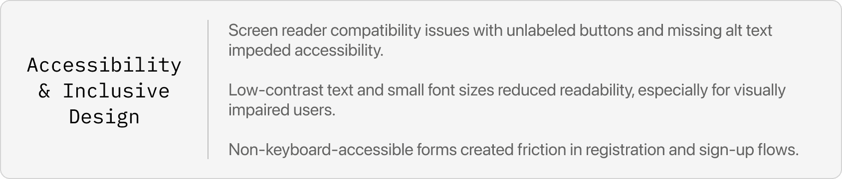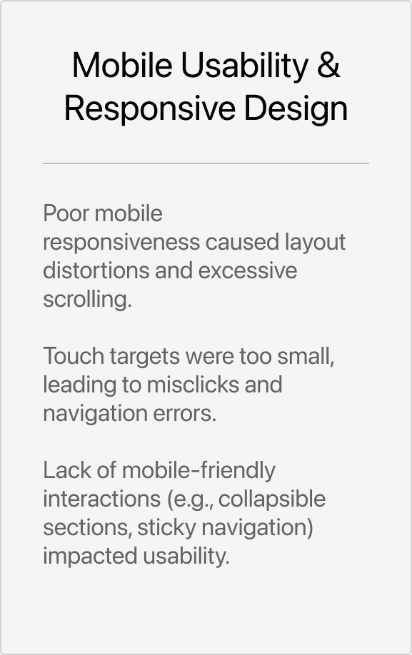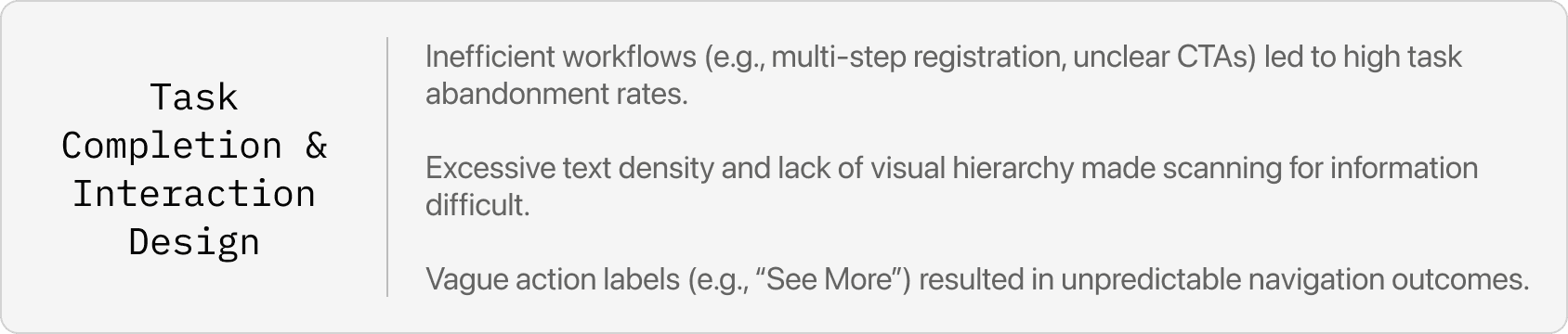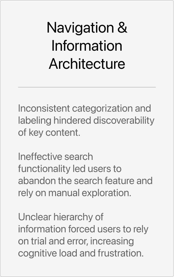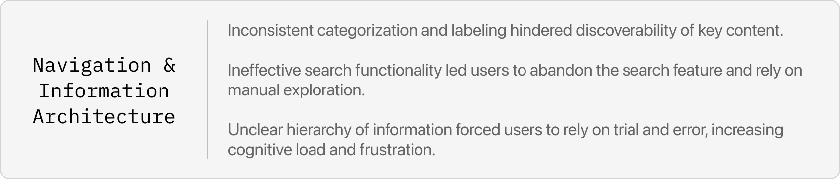 Based on these tests, we categorized them through affinity diagramming and realized the following main pain points:
