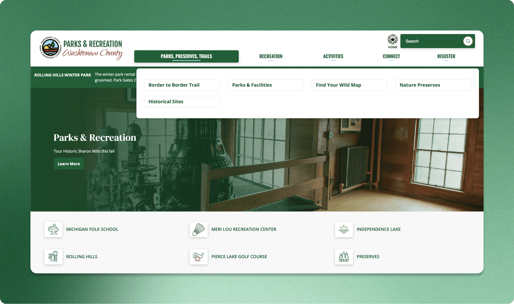 The current Washtenaw County Parks & Recreation (WCPAR) website does not effectively meet the needs of a diverse group of residents, making it difficult for users to easily navigate and find relevant information. As a result, many residents may miss out on opportunities to engage with local parks, recreation programs, and nature areas.